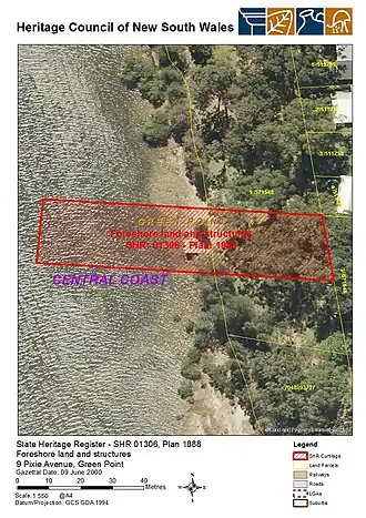 Green Point Foreshore and Structures is a heritage-listed conservation site at 9 Pixie Avenue, Green Point, Central Coast, New South Wales, Australia. It includes the jetty, boatshed, well, and all foreshore land associated with Mulholland's Farm. It was added to the New South Wales State Heritage Register on 9 June 2000.[1]