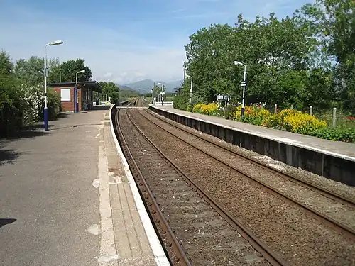 The station is not staffed but has now been provided with a ticket vending machine (card only) to allow intending travellers to buy tickets before boarding. The brick main building is not in public use, but there are waiting shelters on each side. Step-free access to both platforms is via ramps from the road that crosses the railway here (the automated level crossing is immediately to the south of the station).[2] Train running information is provided by posters, digital display screens and telephone.