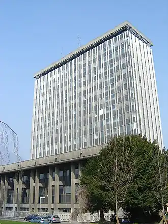 In 1968, Grenoble hosted the X Olympic Winter Games. This event helped modernize the city with the development of infrastructure such as an airport, motorways, the new Hôtel de Ville (town hall), and a new train station.[38] It also helped the development of ski resorts like Chamrousse, Les Deux Alpes, and Villard-de-Lans.[39]