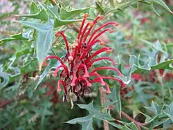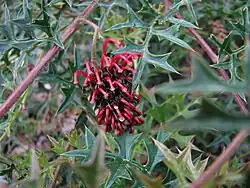 15. ^ Holmes, Gareth; Downing, Trisha; James, Elizabeth; Blacket, Mark; Hoffmann, Ary; Bayly, Michael (2014). "Phylogeny of the holly grevilleas (Proteaceae) based on nuclear ribosomal and chloroplast DNA". Australian Systematic Botany. 27 (1): 56–77. doi:10.1071/SB13045.