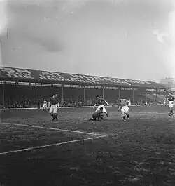 The first competitive fixture to be played at the ground was a Southern League First Division match on 3 September 1904, which yielded a 0–0 draw between Brentford and West Ham United.[5] The Bees had to wait until 22 October 1904 for their first victory at the ground, a 2–0 win over Millwall.[5] The first Football League match to be played at the ground was on 30 August 1920, with Reginald Boyne scoring the only goal of a Third Division fixture versus Millwall.[7]