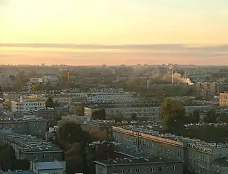 Grochów is a district of Warsaw, officially part of the borough of Praga-Południe although not connected at all to the historical "Praga" district. It is one of the most notable residential areas of right-bank Warsaw. There are many blocks of flats, as well as many pre-WWI houses. Grochów is nicknamed "the lungs of Warsaw", owing to its many green spaces. Despite plans made by the former Communist authorities, Grochów had not transformed into a strictly industrial district, even though it had been such in the 19th century.