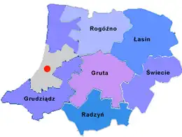 Grudziądz County (Polish: powiat grudziądzki) is a unit of territorial administration and local government (powiat) in Kuyavian-Pomeranian Voivodeship, north-central Poland. It came into being on January 1, 1999, as a result of the Polish local government reforms passed in 1998. Its administrative seat is the city of Grudziądz, although the city is not part of the county (it constitutes a separate city county). The only towns in Grudziądz County are Łasin, which lies 21 km (13 mi) east of Grudziądz, and Radzyń Chełmiński, 16 km (10 mi) south-east of Grudziądz.