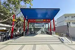 Guangzhou University of Chinese Medicine Station (simplified Chinese: 中医药大学站; traditional Chinese: 中醫藥大學站; Cantonese Yale: Zūngjījǒek Dǎaihǒk Jaahm) is a station on Line 11 of the Guangzhou Metro. It started operations on 28 December 2024.[1] It is located underground at the southwest of the intersection of Baiyun Avenue South,[2] Xiatang Road West[3] and Guangyuan Road Middle[4] in Baiyun District. As the name of the station suggests, it is located underground of the Sanyuanli Campus of the Guangzhou University of Chinese Medicine.