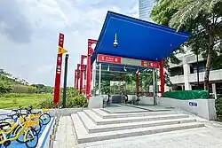 The station has 6 exits for entering and exiting. When the station initially opened, there was also Exit C, which was later discontinued and demolished on 27 November 2019 due to the construction of the Line 12 station, and three new entrances/exits were added to the Line 12 station.