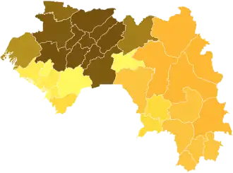 A big turnout was reported for the second round.[35] Early results (from counting in the districts) for the second round indicated a close race,[36] with final results due when all ballots were brought to Conakry for counting.[37] CENI announced the preliminary results on the evening of 15 November, with Condé the winner with 52.52% of the vote on a 67.87% turnout.[5][6] Earlier in the day, both candidates claimed victory, with Diallo saying that he would not accept the CENI's provisional results until his complaints of election irregularities had been investigated.[33] Voting along ethnic lines had been expected to hurt Diallo.[37]
