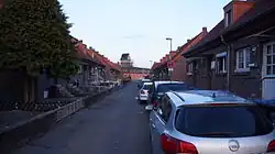 The Gummiinsel was built 1932-39 as part of the Nazi Siedlungspolitik, a programme of relocating parts of the urban populations in highly organized self-suffient suburban communities. The homes were small two-storey red brick houses with no basement, each with a small front yard. They were built within a concept similar to council houses as emergency shelters, especially for families of Yenish tradesmen, showmen, scrap merchants, second-hand dealers and descendants of regional Sinti families.[1]