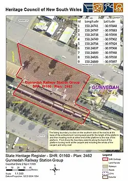 - ^ a b c d e "Gunnedah Railway Station group". New South Wales State Heritage Register. Department of Planning & Environment. H01160. Retrieved 2 June 2018.