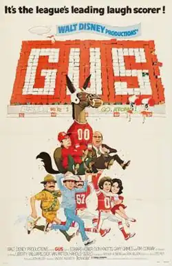 Gus is a 1976 American sports comedy film released by Walt Disney Productions, distributed by Buena Vista Distribution, directed by Vincent McEveety and starring Ed Asner, Don Knotts and Gary Grimes. Its center character is Gus, a football-playing mule.[1][2] The film did well at the box office and was released on home video in 1981.