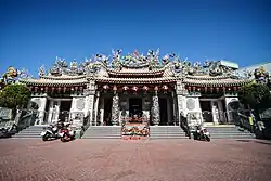 The temple was built in traditional Fujian architectural style with East Asian hip-and-gable roofs. The temple building has three entrances, a front worship hall, a main hall, a rear hall and wings on both sides. The archway of the temple is in Northern Chinese architectural style and the wing rooms in Southern Chinese style.[1] It features a museum which showcases works by master painter Pan Lishui (traditional Chinese: 潘麗水; simplified Chinese: 潘丽水; pinyin: Pān Lìshuǐ).[2]