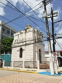 The Guzmán Family Pantheon (Spanish: Panteón de la Familia Guzmán), also known as the Guzmán Hermitage (Ermita Guzmán), is a single story, lime-stuccoed, brick masonry funerary chapel located in Humacao Pueblo (downtown Humacao), in the Puerto Rican municipality of the same name. The structure was built in 1864 the Eclectic style, with Classic, Renaissance and Exotic architectural elements.[1]