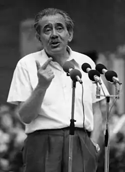 György Aczél (born Henrik Appel; 31 August 1917 – 6 December 1991) was a Hungarian communist politician.[1] He became a member of the then illegal Hungarian Communist Party in 1935, and was a founding member of the Political Committee (Hu: Politikai Bizottság) of the Hungarian Socialist Workers' Party in 1956. He was a deputy minister from 1958 to 1967, later, as one of the leaders of the Party's Central Committee (Hu: Központi Bizottság) the most influential figure in socialist culture politics.[2]