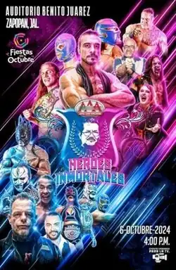 In 1992 then-Consejo Mundial de Lucha Libre (CMLL) booker and match maker Antonio Peña left the company alongside a number of wrestlers to form the Mexican professional wrestling, company Asistencia Asesoría y Administración, later known simply as "AAA".[1][2] Over the next decade-and-a-half Peña and the team behind AAA built the promotion into one of the biggest wrestling companies in the world.[2] On October 5, 2006, Peña died from a heart attack.[1][2] After Peña's death his brother-in-law Jorge Roldan took control of the company with both his wife Marisela Peña, Antonio's sister, and Dorian Roldan (their son) also taking an active part in AAA. On October 7, 2007, AAA held a show in honor of Peña's memory, the first ever "Antonio Peña Memorial Show" (Homenaje an Antonio Peña in Spanish).[3] The following year AAA held the second ever "Antonio Peña Memorial Show", making it an annual tradition for the company to commemorate the passing of their founder. In 2008 the show was rebranded as Héroes Inmortales (Spanish for "Immortal Heroes"), retroactively rebranding the 2007 and 2008 event as Héroes Inmortales I and Héroes Inmortales II.[4]