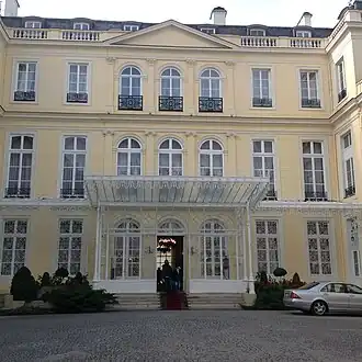 The Hôtel d'Estrées is a hôtel particulier, a type of large townhouse of France, at 79 rue de Grenelle in the 7th arrondissement of Paris. It is the residence of the Ambassador of the Russian Federation to France. It was designed by Robert de Cotte, architect of King Louis XIV, and built between 1711 and 1713 for Madeleine-Diane de Bautru de Vaubrun, the Duchesse d'Estrées (1668-1753). After belonging to several owners, it was purchased by the Russian government in 1863 and became the Russian Embassy. Both Emperor Alexander II of Russia and his grandson, Nicholas II, stayed in the residence when they visited Paris. In 1977 the Russian Embassy was moved to another building, and the Hotel became the residence of the Ambassador. It is now classified as a historic monument of France.