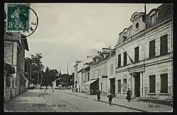 In 1927, the council relocated to the old boys school in the Market Square (now Place Auguste Mounié). The school was designed by Sieur Lequeux in the neoclassical style, built in ashlar stone and was completed in 1872.[4] The design involved a symmetrical main frontage of 11 bays facing onto the Market Square. The central section of three bays had two storeys, while the wings of four bays each were single storey. The building was fenestrated by casement windows which were enhanced by cornices on the first floor. The central section featured a doorway with a moulded surround and, at roof level, there was a balustraded parapet broken by a clock with a triangular pediment above the central bay.[5]