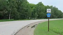 In 1929, M-135 was designated, creating the concurrency along the last several miles of M-98.[5][6] In late 1949 or early 1950, M-28 was realigned to take an angled route southeasterly out of McMillan. The east–west section of the previous M-28 routing was added to M-98 while the north–south segment was added to M-135.[9][10] By the middle of 1958, M-135 was shifted to follow M-98, removing the roadway section added to its routing previously; this change made M-98 and M-135 concurrent north of Helmer all the way to M-28 once again.[3][11] M-135 was removed from the state trunkline system in late 1960 or early 1961, and the designation was decommissioned at that time.[7][8] The M-135 designation has not been reused since.[12] The routing was then assigned as County Road H-33 after October 5, 1970,[2][13] The road has retained that designation ever since.[12]