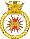 HMS Somerset is a Type 23 frigate of the Royal Navy. She is the eleventh ship of the class to join the fleet since 1989. She was built by Yarrow Shipbuilders Ltd on the River Clyde, in Scotland and was launched in June 1994 by Lady Elspeth Layard, wife of then 2nd Sea Lord Admiral and Commander-in-Chief Naval Home Command Admiral Sir Michael Layard. She entered service in 1996. Lady Layard is the ship's sponsor. She is named after the Dukedom of Somerset.