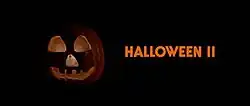 The opening title of Halloween II, an attempt to connect the film stylistically to Halloween, featuring the lit pumpkin as a back drop to the opening credits.