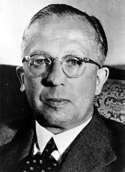 In 1937, he helped win an acquittal for pastor Martin Niemöller.[4][2] During World War II, he developed contacts with the 20 July plot conspirators, including Hans von Dohnanyi and Hans Oster from the military-intelligence.[5] In the 20 July plot, once the Nazis had been routed, Koch was slated to become the presiding judge of the Reichsgericht, the highest court in the German Reich.[5][6][7] The plot failed, however, and Koch sheltered Hans Bernd Gisevius, one of the conspirators.[8] An informer denounced him and Koch and his family were arrested.[6] He was killed extrajudicially in Berlin by a SS-Sonderkommando of the Reich Security Main Office on 24 April 1945.[2][6]