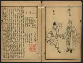 15. ^ a b Rainier Lanselle, dans André Lévy (editor), Dictionnaire de littérature chinoise, Presses universitaires de France, « Quadrige », 1994, rééd. 2000, p. 109. "L'ouvrage a connu une certaine fortune tant en Chine qu'à l'étranger : adapté par Takizawa Bakin sous le titre de Kyōkakuden (Les Chevaleresques), il fut premier roman chinois traduit dans une langue occidentale (en excluant le genre court)."