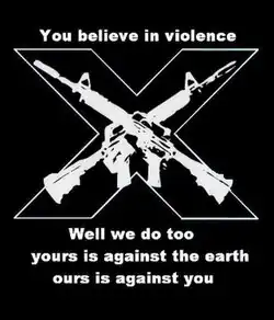 Hardline imagery using two M16 rifles in front of an "X", symbolising the straight edge lifestyle that the movement was branched from.
