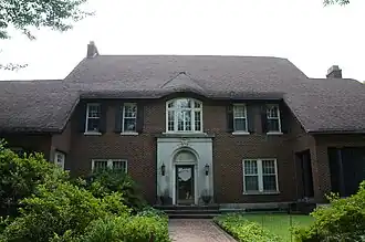 The Hardy House is a historic house at 2400 Broadway in Little Rock, Arkansas. It is a two-story brick structure, with flanking single-story wings and a roof that is designed to resemble an English country house's thatched roof. The entrance is set in a centrally located stone round arch, with a multipart segmented-arch window above. The house was designed by Charles L. Thompson and built in 1921.[2]