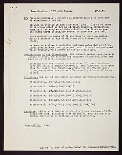 Experimental protocol to "Inactivate TP with X-Rays" shared by Harriett Ephrussi Taylor with James Watson