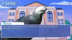 The events of Hatoful Boyfriend begin in the year 2188,[26] when the protagonist, a teenage human girl invited to attend the prestigious bird-only St. PigeoNation's Institute, starts her second year of high school.[27] After a hectic and surreal freshman year of attendance at St. PigeoNation's, the protagonist has grown accustomed to the confusion of being the only human in a school full of birds, and is looking forward to her sophomore year.[28] The story of the dating simulation portion of the game follows the protagonist, and the inter-species love and hijinks—of both the mundane high school and quasi-anthropomorphic bird-specific varieties—that ensue as she draws the attention of and attempts to romance one of a number of eligible birds she comes in contact with over the course of the year.[2]