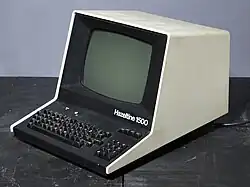 The Hazeltine 1500 was a popular smart terminal introduced by Hazeltine Corporation in April 1977 at a price of $1,125 (equivalent to $5,800 in 2024). Using a microprocessor and semiconductor random access memory, it implemented the basic features of the earlier Hazeltine 2000 in a much smaller and less expensive system, less than half the price. It came to market just as the microcomputer revolution was taking off, and the 1500 was very popular among early hobbyist users.