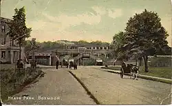 The station consisted of a single 100-metre (330 ft) timber platform on an embankment, on the west side of the line between two rail bridges over Station Road and Corner Hall Road.[4] A goods yard, Cotrerells Siding, veered north from the halt to Boxmoor Iron Works. An iron gas lamp stood opposite the station, outside the Heath Park Hotel, which still stands today.[5]