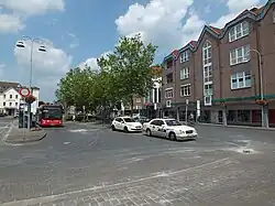Heinsberg gained its first railway connection in 1890 with the construction of the Heinsberger Bahn (Heinsberg Railway), also called Wurmtalbahn (Wurm Valley Railway).[5] After long consideration of the possibilities for extending the railway, the station was built as a terminus. The entrance building was then located on the area that is between the current bus station and medical centre. It was almost identical with that of the neighbouring Dremmen station, but the signal box was in the entrance building and not in a glass annex, as in Dremmen. There were two waiting rooms in Heinsberg. A freight-handling facility was established directly next to the reception building with its own loading track.
