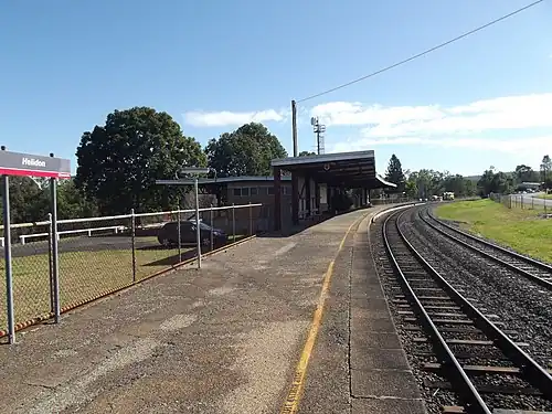Helidon railway station is located on the Main line in Queensland, Australia. It serves the town of Helidon in the Lockyer Valley Region. The station has one platform with a passing loop, opening in 1866.[1]