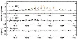 The Helios zodiacal light measurements show excellent stability.[16] This allows detecting local brightness excesses if they are crossed by the Helios field-of-view, like it happened for comet West[17] or for the Quadrantid meteor shower. Repetition by about 0.2% from orbit to orbit sufficed to detect the dust ring along the orbit of Venus.[18]