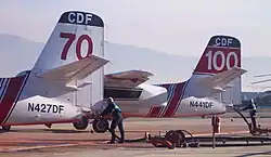 From the beginning of Ryan Air Attack Base, Cal Fire and the USFS used privately owned contracted World War II vintage aircraft. The type and sizes of aircraft varied based on vendor, availability of flyable airframes and spare parts. As the years counted off and the flight hours increased these airplanes became static museum displays or were robbed for parts to keep the dwindling fleet flying. Because of the dwindling air tanker fleet, Cal Fire acquired excess U.S. Navy Grumman S-2A submarine hunting aircraft. These planes were converted from military use to firefighting aircraft using a design developed by Hemet Valley Flying Service. The first two aircraft build-ups were completed by Hemet Valley Flying Service and tested at Ryan Air Attack Base. The basic aircraft design has been in continuous state service since 1975.[5]