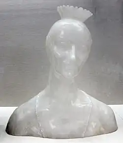 Clews decided to become an artist and studied sculpture under Auguste Rodin.[8] His preferred mediums were oil paint and sculpture with smaller sculptural pieces were often rendered in limestone or porphyry[10] while the larger sculptural pieces were commonly rendered in bronze or marble.[11] His early art in America was not exhibited widely. There are records of at least two exhibitions in New York during 1909, both at the Fifth Avenue gallery of M. Knoedler & Company.[12] The first exhibition was in March for two portraits[13][14] and the second in November was for ten sculptures.[15] His later art was exhibited primarily in France.[16]