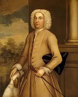After his wife's death in 1766, Fownes Luttrell decided to stand at the general election in 1768. Despite his efforts to build up support, there were still factions and opposition to him. To gain some form of patronage in Minehead, he travelled to London and obtained from the Government control over the offices in Minehead, which prevented his opponents from doing the same.[20] Fownes Luttrell won that election, accumulating more than £1,800 worth of expenses in the process.[20][36] While a member of parliament, he is not recorded as speaking and does not appear in the small number of division lists still surviving.[2] According to Maxwell Lyte, "it does not appear that [he] had any real zest for Parliamentary life [and was] probably far happier with his hounds and his fighting cocks in Devon or Somerset."[37] However, it appears that the Prime Minister, Lord North, believed that in return for the Government's support in 1768, Fownes Luttrell had promised to return the Government's candidate, Thomas Pownall, at the next election; when that time came, in 1774, North supported Fownes Luttrell and "warned off" his rival, Charles Whitworth.[20] However, Fownes Luttrell was elected alongside his eldest son, John, which caused a dispute between the former and North. The dispute was resolved when the elder Fownes Luttrell offered to resign that December, in favour of Pownall, on the condition that Pownall seek his approval before nominating any of his friends or himself in future; a draft document outlining his other conditions included a payment of £3,000 in return for his resignation.[2][20]
