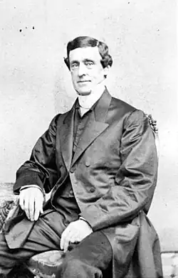 Whitehouse was elected coadjutor Bishop of Illinois in 1851.[2] He was the 55th bishop in the ECUSA, and was consecrated by Bishops Thomas Church Brownell, Alfred Lee, and Manton Eastburn.[4] Upon the death of Bishop Philander Chase, Whitehouse became bishop, but refused to take up his seat for nine years,[3] until his salary demands were met.[5] The diocesan convention in 1860 charged him with dereliction of duty and generally condemned him.[5] During the American Civil War, Whitehouse displayed decidedly pro-Southern sympathies, further alienating his Illinois flock.[6]