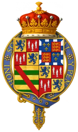He married, in 1524, Mary Talbot, daughter of George, 4th Earl of Shrewsbury, but left no surviving issue. They did have one known child, stillborn on April 1529 at the home of the earl of Shrewsbury, where Mary had gone to escape her husband.[11] The earldom fell into abeyance on his death, but was revived in favour of his nephew Thomas. His widow lived until 1572.[1]