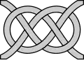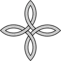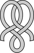 A heraldic knot (referred to in heraldry as simply a knot) is a knot, unknot, or design incorporating a knot used in European heraldry.[1] While a given knot can be used on more than one family's achievement of arms, the family on whose coat the knot originated usually gives its name to the said knot (the exception being the Tristram knot). These knots can be used to charge shields and crests, but can also be used in badges or as standalone symbols of the families for whom they are named (like Scottish plaids). The simplest of these patterns, the Bowen knot, is often referred to as the heraldic knot in symbolism and art outside of heraldry.