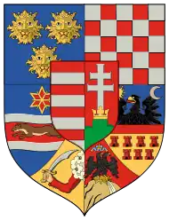 | Arms of the Lands of the Crown of Saint Stephen (1867–1915) | Arms of the Lands of the Crown of Saint Stephen (1915–1918) | Small Arms of Austria (Cisleithania) (1805–1918) |