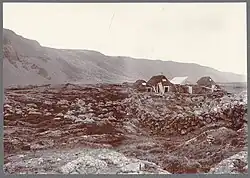 For some centuries, the farm at this place even had a reputation for being rather rich. There was good land down by the sea, but also up in the mountains for sheep pasture. And the farm was situated at the coast, which meant additional income from hunting of seabirds and seals, fishing, also trout angling in the nearby small lake (today a lagoon), and last but not least big quantities of drift wood, very precious in a land more or less without its own forests.[7]