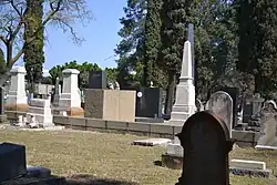 The Church Street Cemetery is located in Pretoria on the corner of WF Nkomo (Former Church Street) and Eskia M'phahlele drive (Former DF Malan Drive).[2] The central part of this historic cemetery is known as The Heroes' Acre. The cemetery is a vast green field filled with tombstones of diverse shapes and styles which are organized in rows. As this is a Christian cemetery, the graves are oriented facing east. Trees and shrubbery give the cemetery a calm feel. The silver crosses in The Heroes' Acre are significant and distinctive of the cemetery.