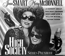 High Society is an American sitcom television series starring Jean Smart and Mary McDonnell that aired Monday nights on CBS from October 30, 1995, to February 26, 1996. It was added to the CBS schedule as a replacement for If Not for You, a sitcom that was cancelled after a few episodes.[1] The theme song was "The Lady Is a Tramp" sung by Chaka Khan.