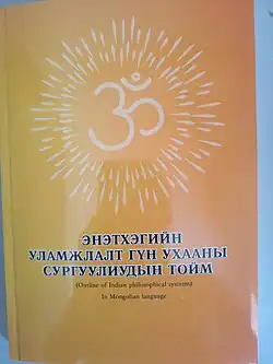 Delving more into intricate concepts and nuances of Hindu philosophy, a book entitled "Outline of Indian Philosophical Systems in Mongolian language" appeared in book stores of Ulaanbaatar in July, 2021. The boom reviewz concepts of traditional 6 Hindu darshanas (Charvaka, Mimamsa, Nyaya, Vaisesika, Sankhya, Yoga) with emphasis in Advaita Vedanta, and is authored by Adi Shankara.[23]