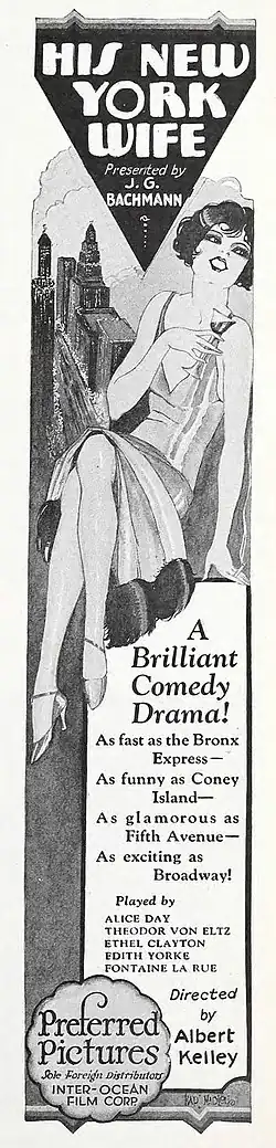 His New York Wife is a 1926 American silent drama film directed by Albert H. Kelley and starring Alice Day, Theodore von Eltz and Ethel Clayton.[1]