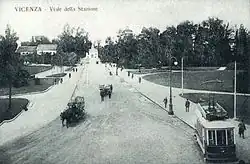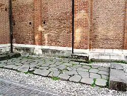 At the center of the main streets, the decumanus maximus—roughly corresponding to the current Corso Palladio—formed the urban segment of the Via Postumia, which, to the east, crossed the Astico via a bridge[22] and continued toward Aquileia, while to the west, it passed through the gate later called Porta Feliciana and then Porta Castello, continuing toward Verona. It was wide enough to allow two-way cart traffic.[21]