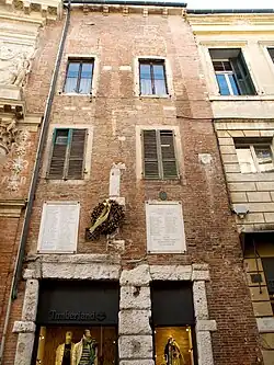 Strabo[11] suggests that the inhabitants of the site belonged to the Euganei population,[12] but modern scholars largely agree that they were Veneti, as evidenced by the discovery of over 200 votive tablets dedicated to the Venetic goddess Reitia and an inscription in the Venetic language, found in 1959 during the construction of a building opposite the Palazzo Trissino municipal headquarters. The possibility that they belonged to Gallic or Celtic tribes is ruled out.[10] Pliny the Elder in the 1st century AD also mentions Vicenza in his Naturalis Historia as a center of Venetic foundation, a non-native Indo-European population.[13]