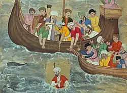 The concept of underwater transport has roots deep in antiquity. There are images of men using hollow sticks to breathe underwater for hunting at the temples at Thebes, and the first known military use occurred during the siege of Syracuse (415–413 BC), where divers cleared obstructions, according to the History of the Peloponnesian War. At the siege of Tyre (332 BC), Alexander the Great used divers, according to Aristotle. Later legends suggested that Alexander descended into the sea using a primitive submersible in the form of a diving bell,[1] as depicted in a 16th-century illustration in the works of the Mughal poet Amir Khusrau.[2]