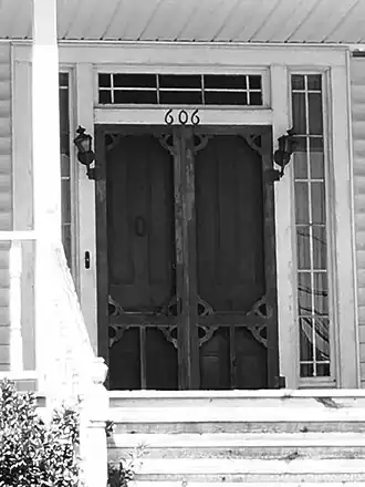 Hix-Blackwell House front door showing 19th c. decorative fretwork