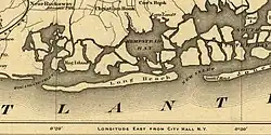 3. ^ a b c "ISLAND MOVING TO ARVERNE.; Far Rockaway's Outer Beach Being Washed Away by the Big Waves". The New York Times. August 22, 1893. ISSN 0362-4331. Retrieved May 3, 2017. The outer beach, known as Hog Island, was covered with water to-day at high tide, the waves washing over into the inlet. The storm of last Winter, which cut away the island, wrecking Craig's Pavilion and destroying a number of bathhouses, left only a narrow bar of what had once been a broad beach. Several times the wave have broken into the inlet in various places.